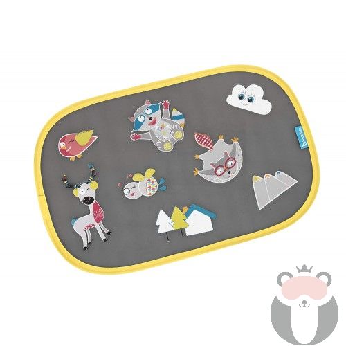 Умният сенник на Badabulle осигурява необходимата защита от силните слънчеви лъчи. Закрепва се към прозореца на автомобила на електростатичен принцип - не са нужни лепенки или вендузи за вакуумно захващане. Лесно се поставя и маха. Подходящ е за почти всички размери прозорци. Комплектът съдържа и 8 броя стикери със забавни картинки и животни, които могат де се поставят върху сенниците - също на електростатичен принцип. Децата ще се забавляват докато украсяват сенниците с цветните картинки.