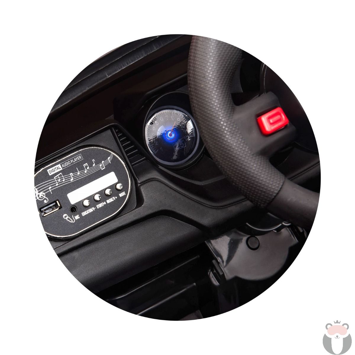 - Колата е снабдена LED светлини и музика на таблото;