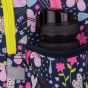 Раницата има каишка за закопчаване на гърдите, което прави носенето й по-лесно и удобно за детето. Каишката спомага за отнемането на напрежението от врата и кръста и спомага за по-правилна стойка. Раницата има две основни отделения и голям преден джоб. В него ще откриете органайзер за дребни вещи и ключове. За по-голямо удобство и сигурност то също се затваря с цип.