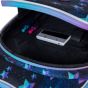 Раницата е с две отделения. Едното е широко и е разделено с преграда. Предното отделение е малко, снабдено с органайзер за дребните вещи и място за ключове. И двете отделения се отварят и затварят с двоен цип, който стига до долната част на раницата за максимално улеснение на ученика.