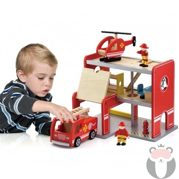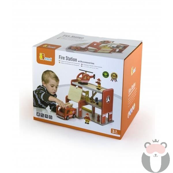 Дървената пожарна станция от Viga toys е прекрасен подарък за всяко момче. Изработена от дърво тя дава топлота и нежност при допир. Тази дървена пожарна станция е снабдена с дървена пожарна камера, пожарен камион, двама пожарникари, хеликоптер, пожарен кран, бюро и стол за работа. С нея детето може да играе с часове .