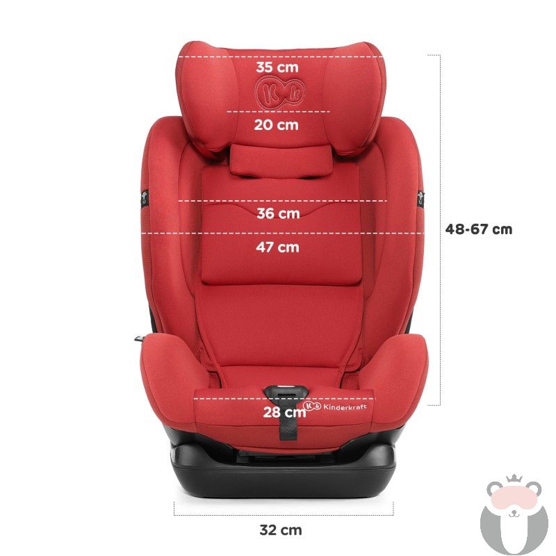 Седалката е монтирана на стабилна основа, което повишава безопасността на детето, като поема първата ударна сила. Седалката е интегрирана с основата.