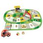 Игрално поле-пъзел от 9 части, 3D гараж за ремонт, купа, 4 коли играчки, 1 арка за финал, зар с цветове и зар с числа.