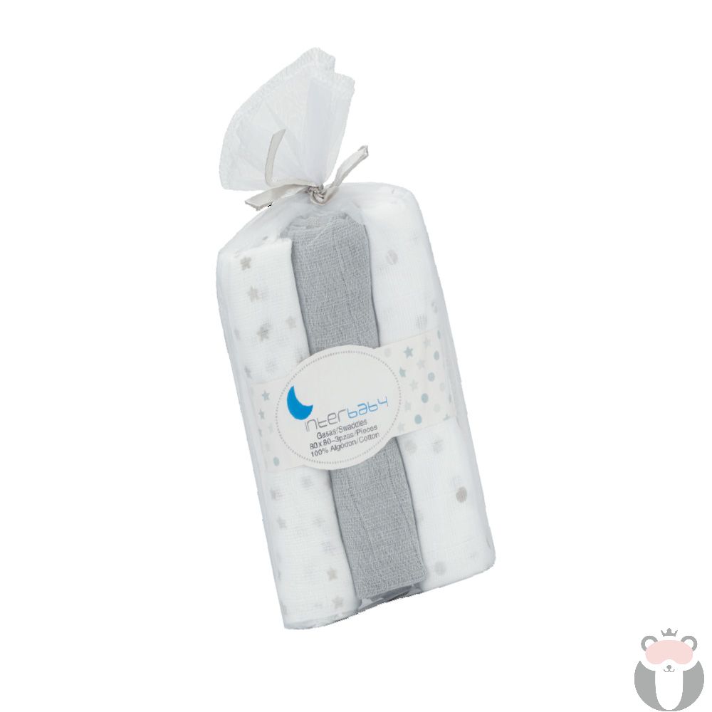 Interbaby бебешки муселинови пелени 3бр/оп. ,сив